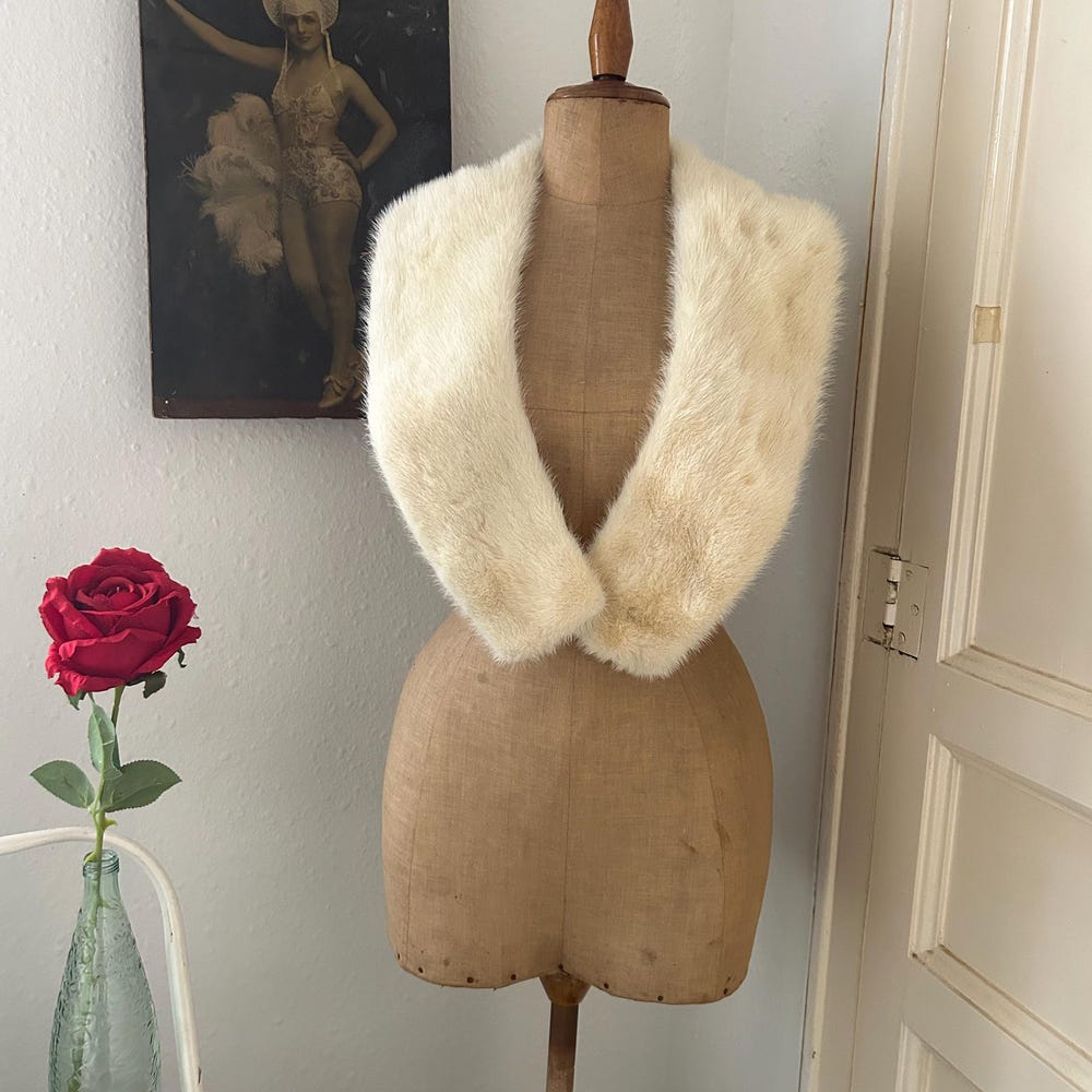 Vintage 1930s Long Cream Colored Mink Fur Collar